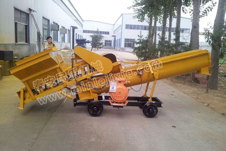 使用時收起攪拌機構(gòu)的支腿,調(diào)整好攪拌機構(gòu)的位置后放下支腿使導(dǎo)軌輪離地,按外形圖圖示將水泥輸送帶、細(xì)石輸送帶搭扣在攪拌機構(gòu)上即可。