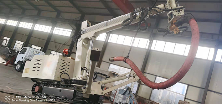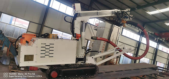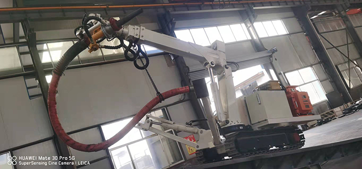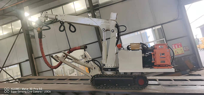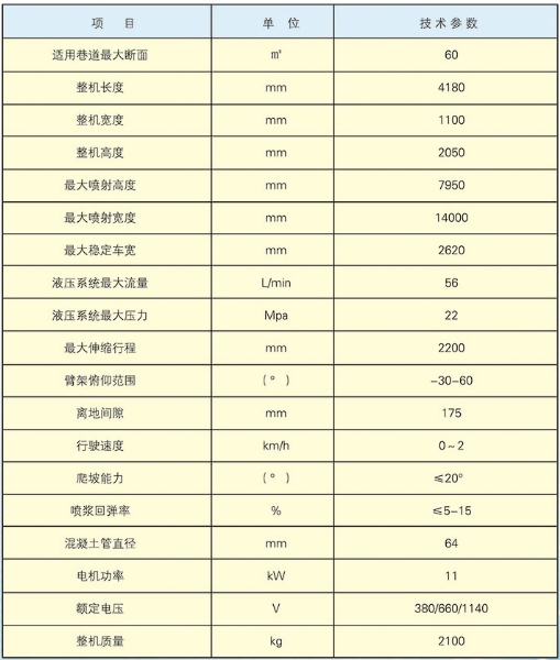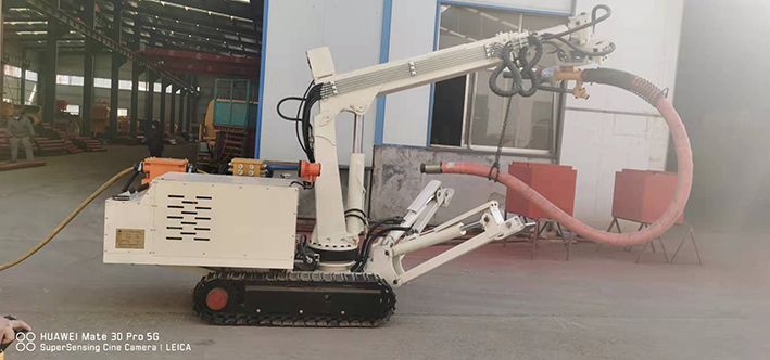 CPF-6OLY型礦用混凝土輔助噴射車(以下簡稱噴漿機(jī)械手)主要用于煤礦井下煤巷、半煤巷、全巖石掘進(jìn)巷道與混凝土噴射機(jī)配套使用,代替人工噴漿作業(yè),滿足噴漿工藝要求,整機(jī)小巧、靈活、耐用、適應(yīng)能力強(qiáng),可用于大型噴漿機(jī)組無法進(jìn)入的巷道,實(shí)現(xiàn)噴漿無線操作、機(jī)械化作業(yè),減輕人工噴射勞動強(qiáng)度大的問題。整機(jī)完全采用無線遙控操作、液壓控制,工作性能安全可靠。下車液壓系統(tǒng)負(fù)責(zé)行走、上車液壓系統(tǒng)負(fù)責(zé)噴射,上下車動作手動切換,防止誤操作。整機(jī)具有結(jié)構(gòu)穩(wěn)定可靠,動作平穩(wěn),噴射范圍大,自由度多,遙控操作靈活,噴射平整度好,回彈少,噴射效率高、施工質(zhì)量好,可實(shí)現(xiàn)遠(yuǎn)程控制,操作人員可位于在可視情況好、粉塵濃度少,較為安全的位置操作,保證使用人員安全。